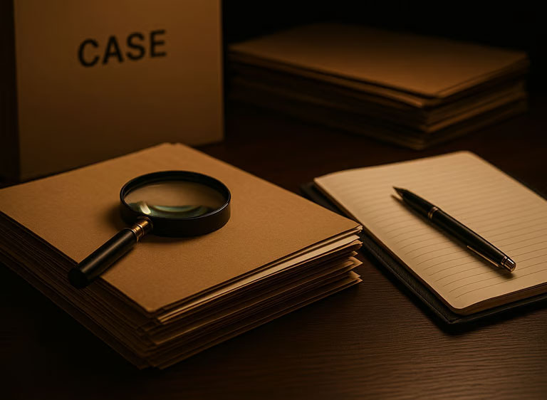 Die Arbeit eines Detektivs erfolgt: